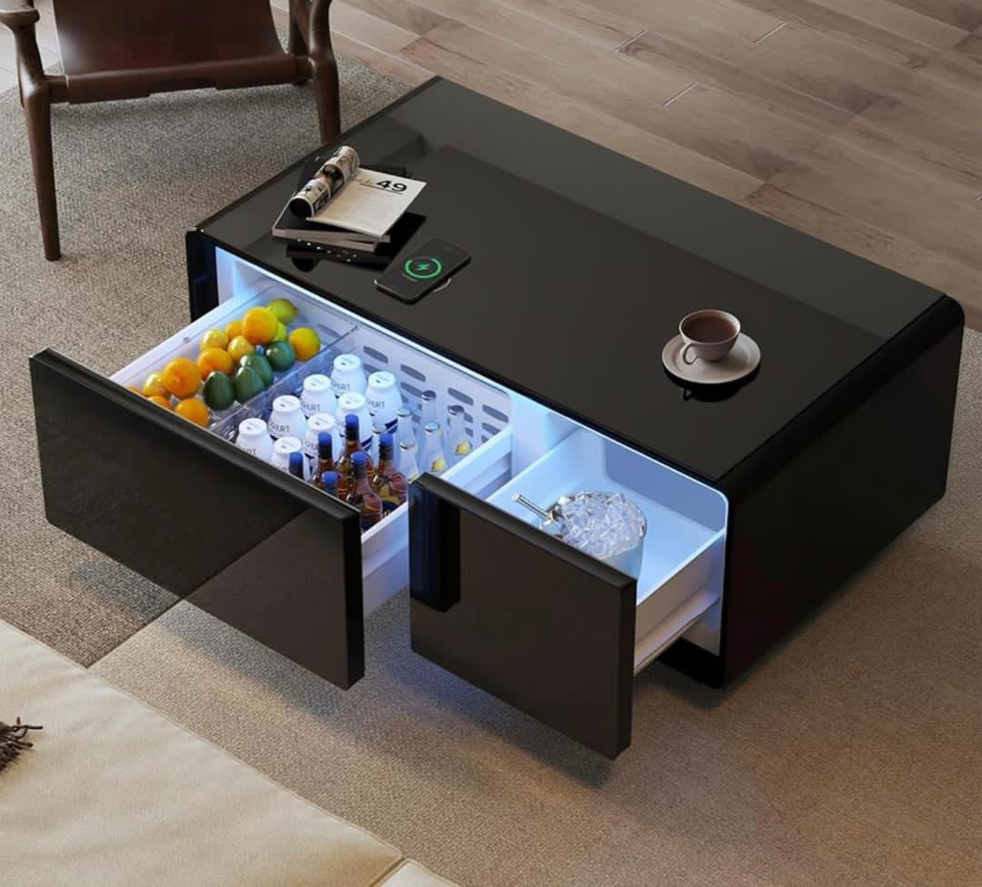 Smart Freezing Coffee Table*_Chill drinks without leaving the couch._A modern coffee table with a bu...
